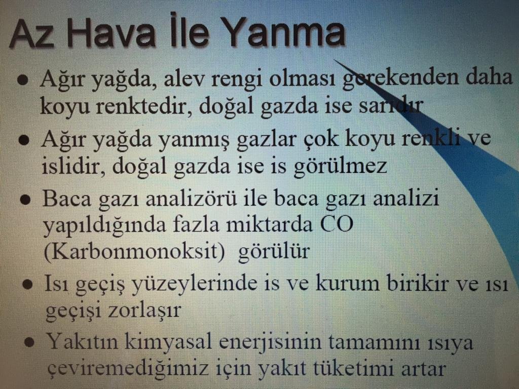 ÇÖZÜM: Baca gazı analizi yapılarak, baca gazı salınım değerleri olması gereken standart değerlere uyumlu olacak şekilde Hava-Yakıt oranı yeniden ayarlanmalıdır.